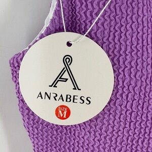ANRABESS Womens Swimsuit Purple Summer Sq Neck -Full Coverage Textured-Medium