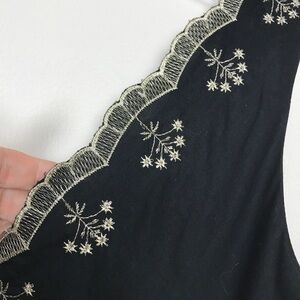 Ann Taylor Factory black faux wrap dress. Fully lined, empire waist, V neck in front and back. Dress is decorated with gold thread designs all around the neck and the scalloped hem. Perfect party dress! Excellent pre-owned condition. Size 4.