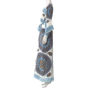 Calypso St. Barth. sz S blue and white bohemian style medallion print maxi dress 100% silk