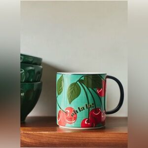 Charming mug with cherry design. Features a sleek black handle. Perfect for adding a playful touch to your drinkware.It is part of Anthropologie's exclusive Maeve label collection.