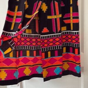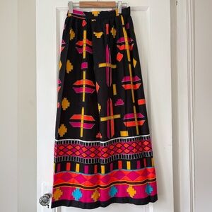 Vibrant skirt featuring a striking geometric pattern. Perfect for adding a pop of color to your wardrobe with a boho western festival chic vibe! That's a lot of things but this skirt is also so much all in one. Button up with a slit.