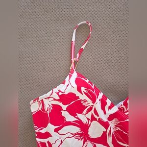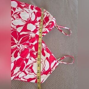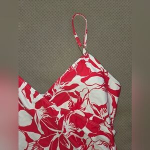 Liz Claiborne women's size 14 one-piece swimsuit is a stylish pick for pool days or beach getaways. Made from floral-print stretch knit, it features adjustable spaghetti straps, removable cups, built-in tummy control, and lining for extra support.