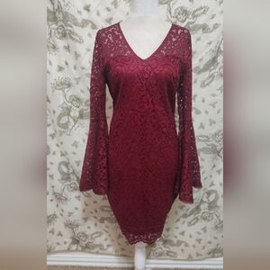 Burgandy Red Elegant Lace Bell Sleeve WHBM Dress Sz 4