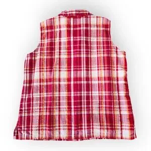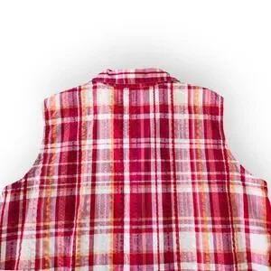 In excellent vintage condition a red, orange and white plaid sleeveless button down top cotton in size 2X by St Johns Bay