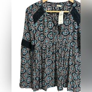 Hollister Boho Floral Peasant Top Lace Detail Long Sleeve Blouse Size Small NWT