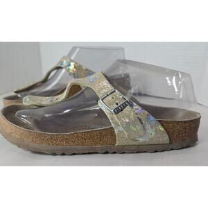 Birkenstock Gizeh Sandal Washed Metallic Silver Sz 7-7.5 Sz 38 Comfort Shoe 934