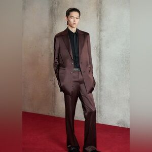 Technically this is a men’s coat but it looks sooooo good on a woman! Camel colored, front button closure with placket, hip pockets, interior pocket, back flap.