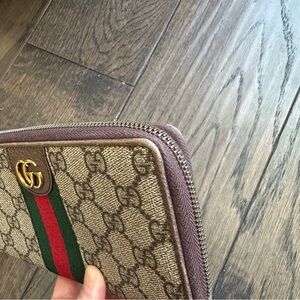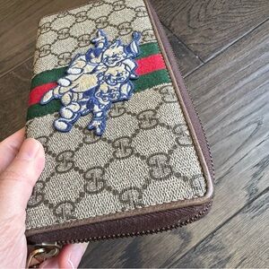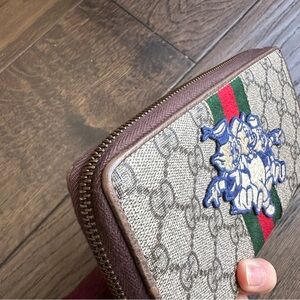 Gucci x Disney GG Supreme Ophidia Web Three Little Pigs Zip Around Wallet Beige