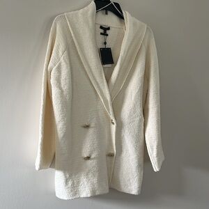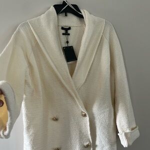 Massimo Dutti Weave Textured Wrap Cardigan With Gold Buttons Ivory Cream Sz S/M