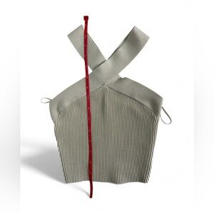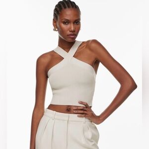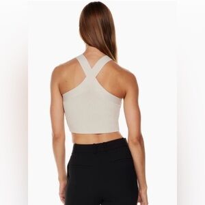 Aritzia Babaton Sculpt Knit Criss Cross Cropped Tank size 2XSmall Matte Pearl