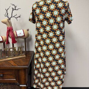 LuLaRoe Carly Swing Dress Retro Floral Orange Turquoise NEW Size S