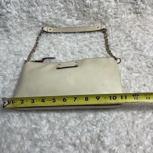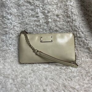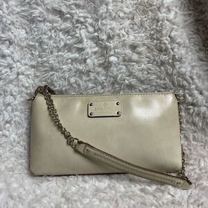 Kate Spade New York Leather Beige Chain-Link small Shoulder Bag. Top zipper the inside lining has a side zipper two side pockets.Pre owned in good used condition transfer marks on the lining and wears on the bottom corners .see all pictures any questions please message.F5