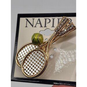 Napier Gold Tone Tennis Racket Pin new on card Thank you for your interest in my closet! Please feel free to reach out with questions. I am open to reasonable offers and love to bundle for a better deal!