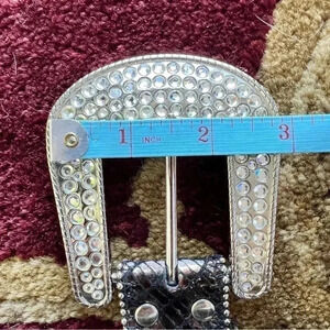 Women’s Silver Tone Rhinestone Animal Print Western Boho Belt in Black L…