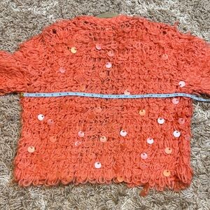 From Anthropologie, open front loop crochet sweater with plastic sequins. Worn once so condition is excellent.