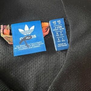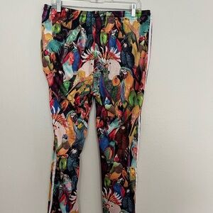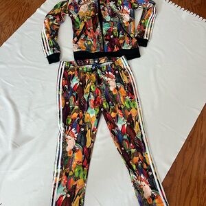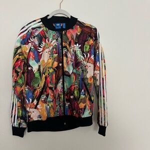 Vibrant floral design. Comfortable fit. Signature stripes on sleeves and legs. Jacket is size medium but runs big and pants are size large.