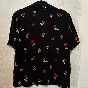 Vintage, 90s, button up, conversational print, novelty print, quirky, lightweight, relaxed