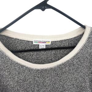 Cotton Country Sweater Size XL Gray Chunky Knit Scoop Neck Canada. Gently used with no rips or stains. Please see photos. Recycled cotton, polyester, cotton.