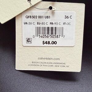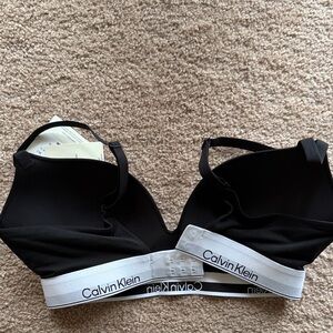 Elegant black bra by Calvin Klein. Features signature logo band. Perfect for everyday wear.