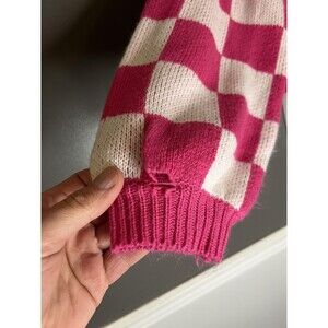 Better Be Sweater Womens Medium Pink White Checkered Cropped Balloon Sleeve