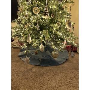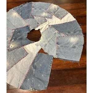 Recycled Denim Embroidered Hand Made Tree Skirt Jeans Blue Red Star Accents