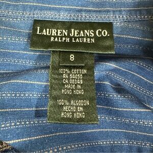 Lauren Jeans Co Blue Striped Pin Tuck Button Front Lace Inset Indigo Top Sz 8