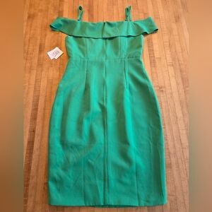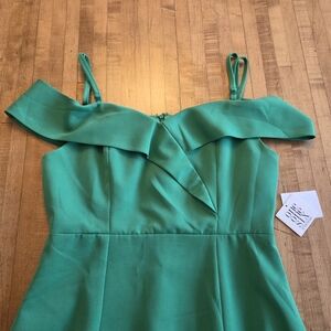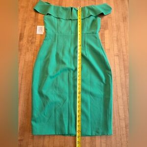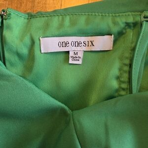 Turn heads with this chic off-shoulder green dress by One One Six. You can wear this several ways - with shoulder straps for support or off the shoulders. Please see pictures. There is a nice slit in the front for a kick pleat. Fully lined. It is brand new never worn with tags on. The size says Medium and I added pictures with measurements so you can see if it will fit. Great dress in a great color.