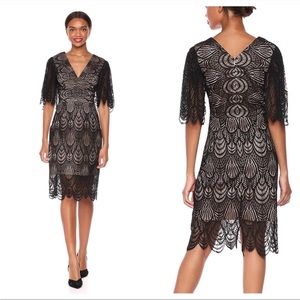 NWOT Dress The Population Mia Angel Sleeve Lace Sheath Midi Dress in Red