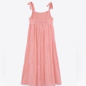 Zara tiered cotton midi dress in bubble gum pink with tie straps