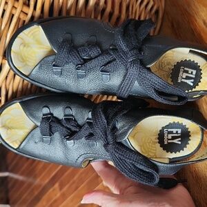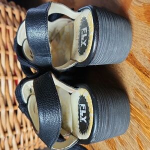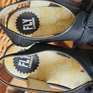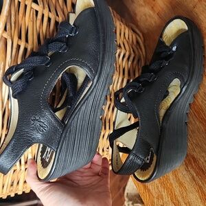 FLY London Mousse Black Lace Up Platform Wedge Sz 39 US 8