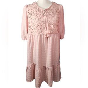 Dokotoo Pink Lace Boho Summer Elbow Sleeves Dress. M
