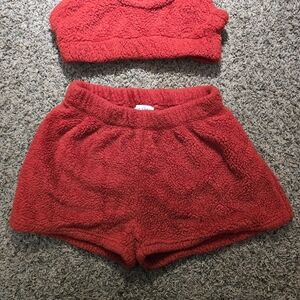 Love Poem by Block red sherpa lounge set in a super soft teddy fleece, featuring a scoop‑neck crop tank and high‑rise elastic‑waist shorts. Size Large with a comfy, relaxed fit that’s perfect for cozy loungewear, sleepwear, or styling with an oversized hoodie for that off‑duty baddie look. Excellent preowned condition with no major flaws; comes from a smoke‑free, pet‑free home and ships same day. Great gift or holiday set for those who love aesthetic comfy matching lounge outfits.