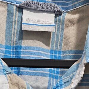 Columbia Men's Plaid Short Sleeve Button-Up Shirt L Beige & Blue Cotton