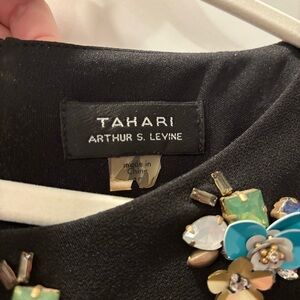 Tahari Arthur S Levine size 12 absolutely stunning Lilly black dress! The beaded flowers are exquisite!
