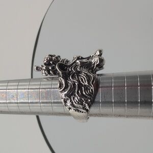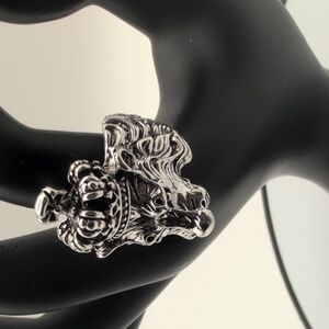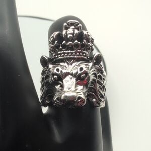 NWOT Silver Toned Lion King Head Ring with Crown Stainless Steel