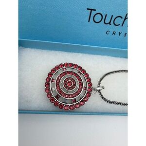 Touchstone Crystal by Swarovski Red Scarlet Medallion Necklace Silver Plated