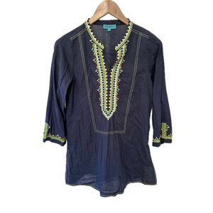 BritishIndia Traveller Women's 100% Cotton Embroidered Beaded Tunic Top XS/S