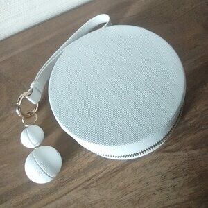 Beautiful Pandora White Travel Jewelry Case. A great item to have for traveling with your favorite jewelry pieces and valuables. Both a stylish and practical box for storing and organizing items while on the go. The wrist strap wristlet adds convenience and security for easy access to your jewelry while traveling. High-quality construction from the trusted brand Pandora, this jewelry box is a must-have for any jewelry lover looking to keep their treasures safe and secure.