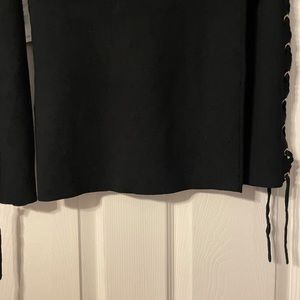NWT Dex lace up long sleeved sweater. Ties from shoulder to wrist accented with gold rivets. Jewel neckline. Rayon/Nylon material. Size small.