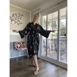 Made in Japan. Please see the photo for measurements of the kimono. The model is wearing size M and is 5.8 inches tall.