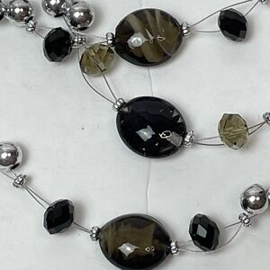 Triple Strand Layered Beaded Necklace Silver Black Green