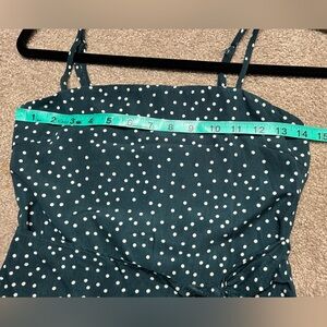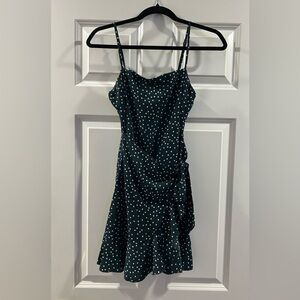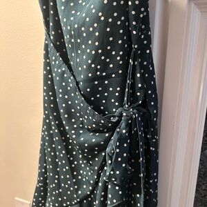 Polly hunter green polka dot dress with a faux wrap tie. Excellent condition. Zipper back, adjustable straps.