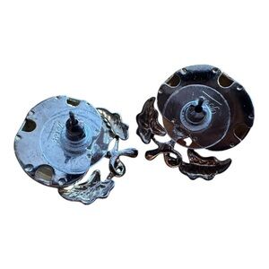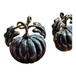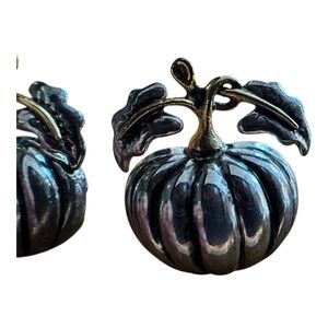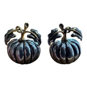 Charming vintage Best brand earrings featuring a sculpted pumpkin motif with curling vines and leafy details. Beautifully made in a two-tone gold + silvertone finish, giving them that warm autumnal glow with a touch of whimsy.