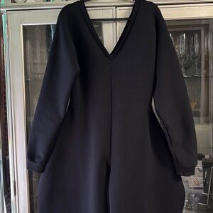 COMFY COZY SWEATSHIRT JUMPSUIT IN BLACK - L