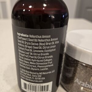 Experience the benefits of M3 Naturals Anti-Cellulite Massage Oil and Arabica Coffee Scrub. Infused with collagen and stem cells for enhanced skin care. brand new, sealed, no box!