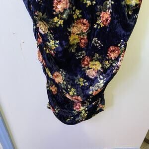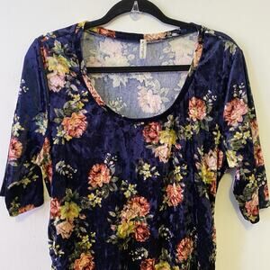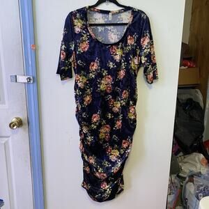 Mother Bee Maternity Midi Dress Blue Floral Velvet Size M/L Short Sleeve Soft