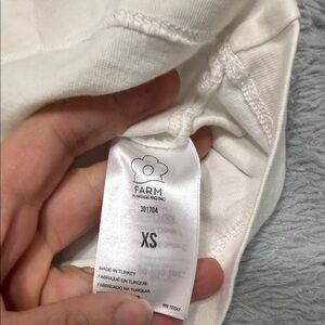 Vibrant pink banana graphic on a white crop top. Unique and stylish design by FARM Rio. Has small stain on front, overall is amazing.