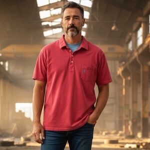 Johnnie-O Mens Red Short Sleeve Cotton Polo Shirt Surfer Logo Pocket Size L