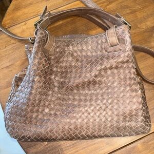 Made in Italy with genuine woven leather (intrecciato style).