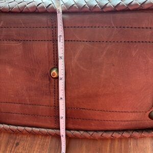 Leather has beautiful natural patina from age, some minor marks and wear shown in photos. Hardware is solid brass with light vintage wear. Perfect everyday bag or elevated casual look.